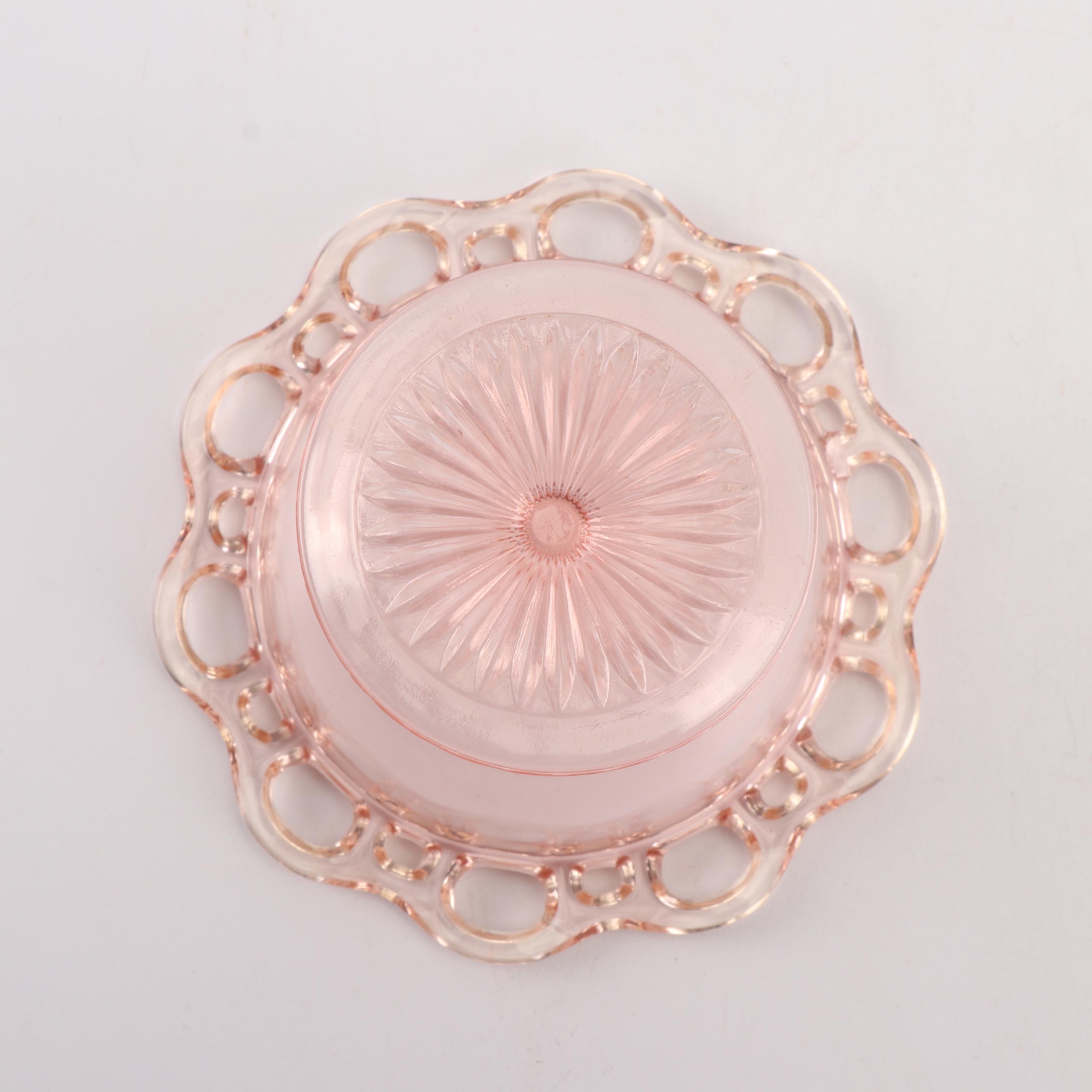 Vintage Anchor Hocking "Lace Edge Pink" Depression Glass Serveware EBTH